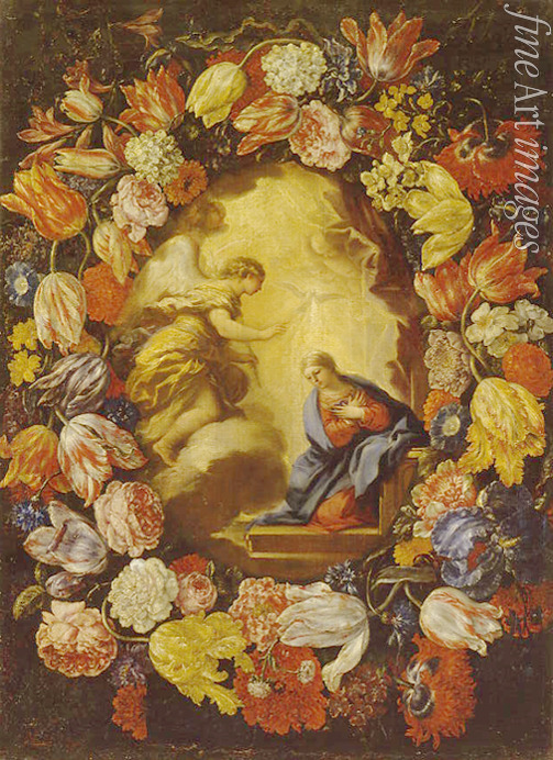 Flowers, Madonna, Virgin, Annunciation, Barock, Bible, New Testament, Maria, Archangel Gabriel, Annunciate, Angel, Garland, Mary, Mother of God, Virgin Mary, Holy Spirit, Holy Ghost, Archangel, Maratti