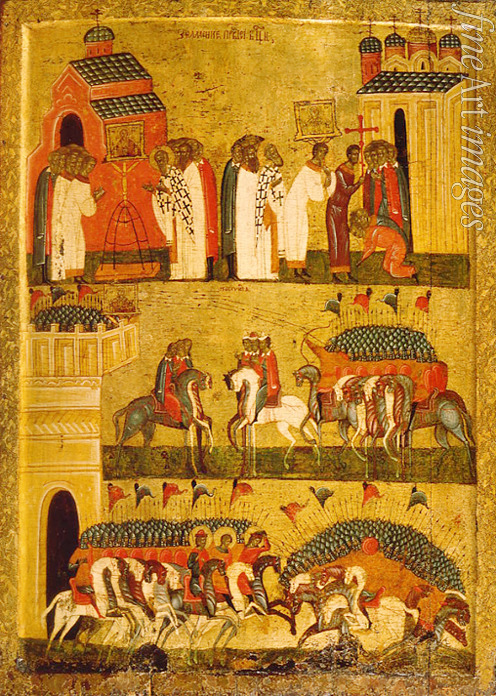 Keywords: Russia, Defence, Horse, Icon Painting, Horses, Fight, Battle, Faith, War, Russian History, Orthodox Church, Icon, Russian Church, Ukraine, Rurik Dynasty, Kievan Rus, Slavic peoples, Slav, Slavs, Vladimir, Middle Ages, Novgorodians, Novgorod, Suzdalians, Suzdal, 1169, Defence of Novgorod, History of Russia, Early Rus, Novgorod the Great, Rurik, Andrei Bogolyubsky, Bogolyubsky, Wonder of the Icon, Virgin of the Sign, Our Lady of the Sign, Miracle of the Icon of Our Lady of the Sign, Andrey Bogolyubsky, Andrei I of Vladimir, Andrei I Bogolyubsky, Andrei I, Andrey I Yuryevich, Andrey Yuryevich
