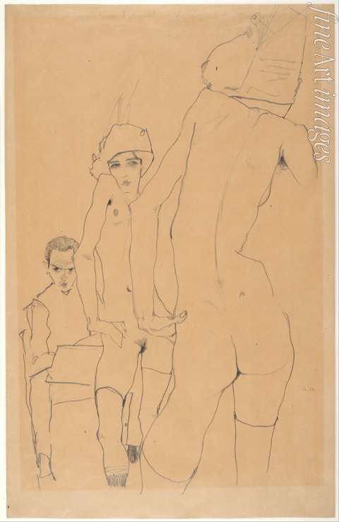 Schiele with Nude Model before the Mirror