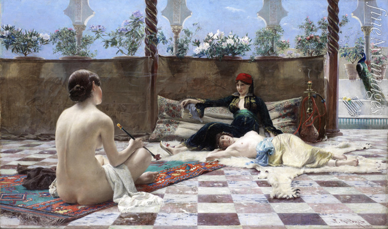 Girl, Melancholy, Smoker, Beauty, Oriental, Young Woman, Pipe, Woman's portrait, Female portrait, Romanticism, Muslim, Harem, Orient, Moslem, Moslem woman, Serraglio, Odalisque, Pipe smoker, Smoking pipe, Muslim women, Muslim woman, Hookah, Hookahs, Waterpipe, Narghile, Qalyan, Water-Pipe, Water Pipe