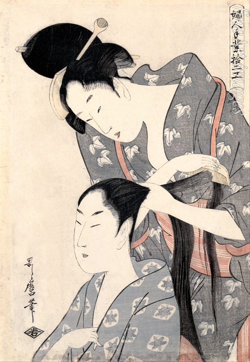 Asian, Woodcut, Far East, Japan, Hairdresser, Edo period, Japanese Art, Asia, Ukiyo-e