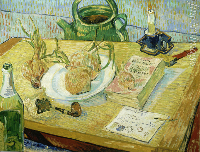 Still Life with a drawing board, pipe, onions and sealing wax