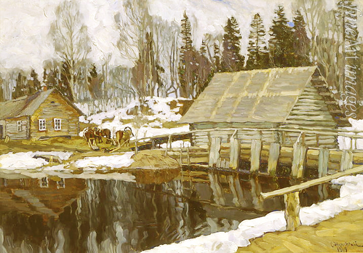 Keywords: Snow, Country side, Nature, Seasons, Poetry, Grove, Trees, Clouds, Colourfulness, On the banks, Spring, Russia, At the water, Spring landscape, Silence, Mill Stream, Mill, Water mill, Mill pond, Millpond