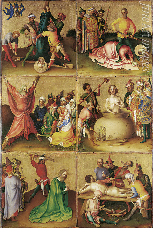 Lochner Stephan - Martyrdom of the Apostles. Left panel