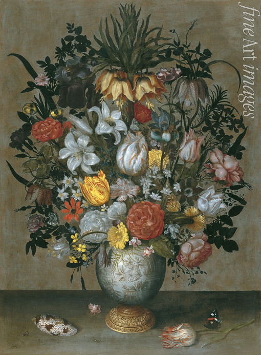 Bosschaert Ambrosius the Elder - Chinese Vase with Flowers, Shells and Insects