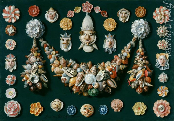 Festoons, masks and rosettes made of shells