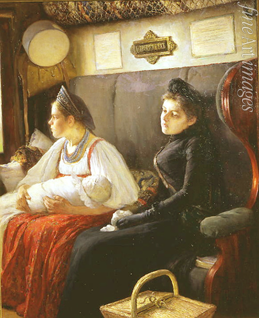 Russia, Railway, Train, Travel, Folklore, Traditional, Traditional dress, Traditional costume, Wet-nurse, History of rail transport, Russian dress, Sarafan, Kokoshnik, Wet Nurse, Widow, Compartment coach, Passenger coach, Luggage, Baggage, Passenger's luggage, Hand luggage, Coffer, Grief, Headgear, Headwear, Headdress, Train travel