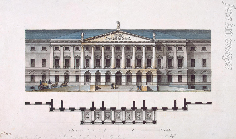 Project of Smolny Institute. The Main Facade and the Ground Floor Plan
