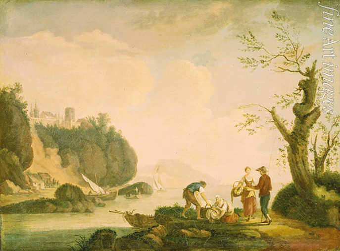 Keywords: Summer, Country side, Nature, Seasons, Poetry, Summer landscape, Trees, France, River, Mountain landscape, Idyll, Country life, Water, Banks, Hill, Riverbank, Mount, Boat, Rococo, Fishermen