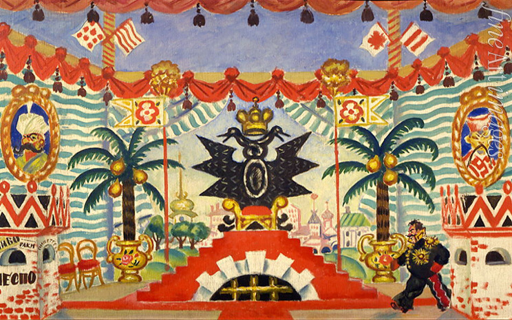 Kustodiev Boris Michaylovich - Stage design for the theatre play The flea by E. Zamyatin