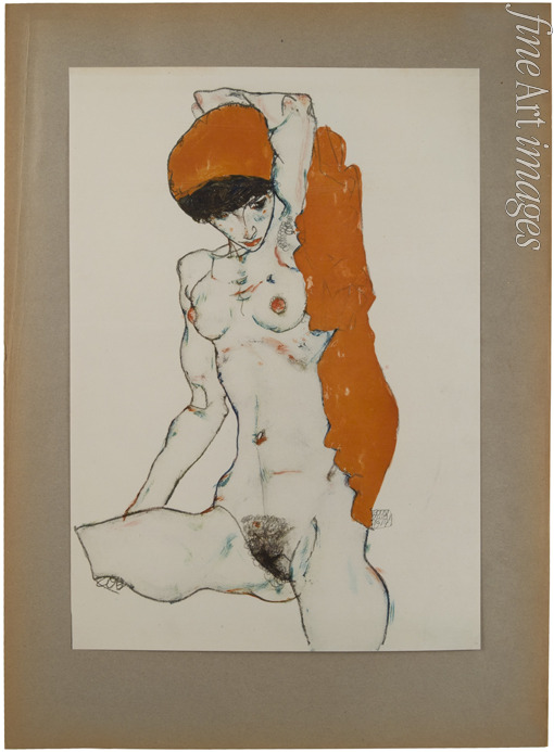 Female nude with orange-red cloth