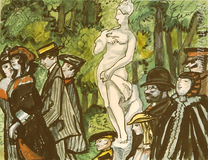 Summer, Seasons, Trees, Garden, Society, Russia, Sculpture, Fashion, Satire, Statue, Stroll, Walk, Irony, Saint Petersburg, Travels, St. Petersburg, Summer Garden, Gown, Dress, Frock, Clothes, Wear, Attire, Clothing, Soudeikine, Soudeikin