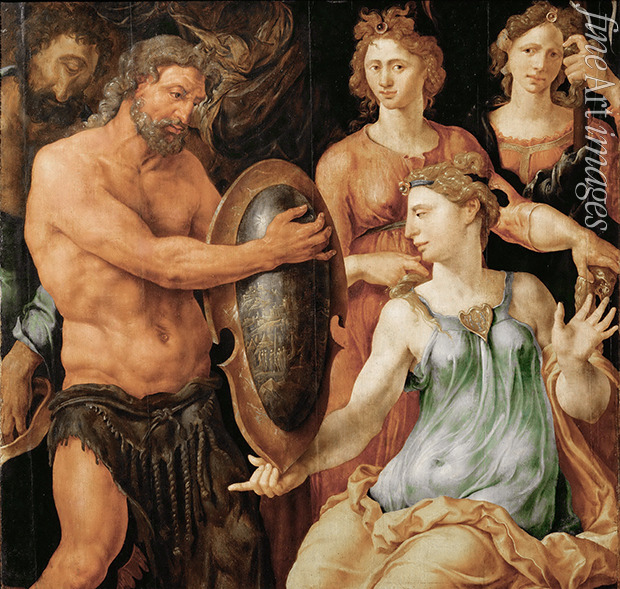 Vulcan hands Thetis the shield for Achilles