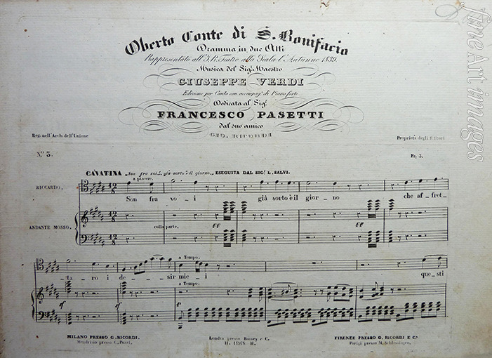Cover of the score of the opera Oberto conte di San Bonifacio by Giuseppe Verdi