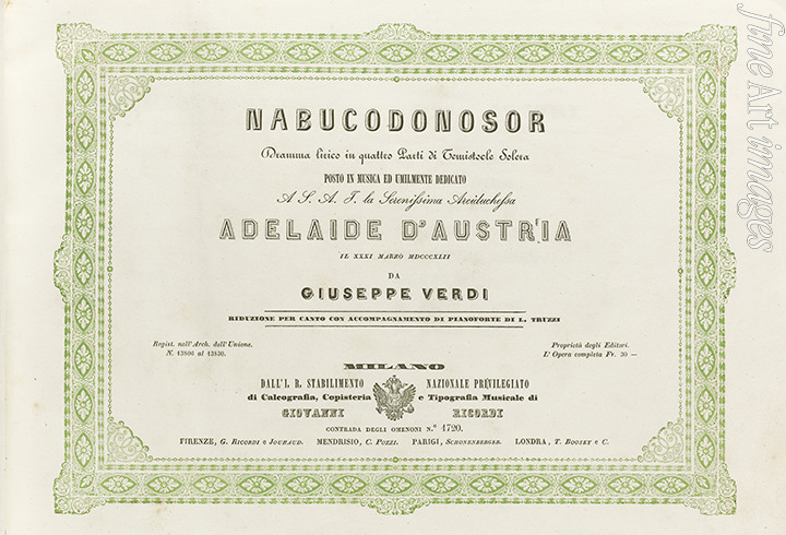 Cover of the score of the opera Nabucco by Giuseppe Verdi