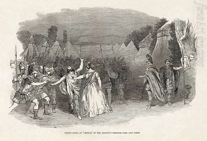 Opera Attila by Giuseppe Verdi at Her Majesty's Theatre, London. From The Illustrated London News of April 15, 1848