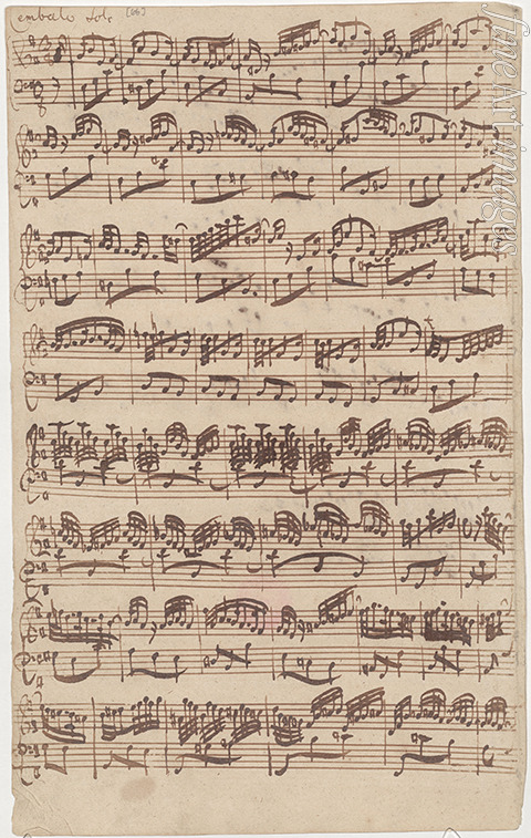 Autograph manuscript of the first page of the Allegro for harpsichord solo from the first version of the sixth sonata in E minor
