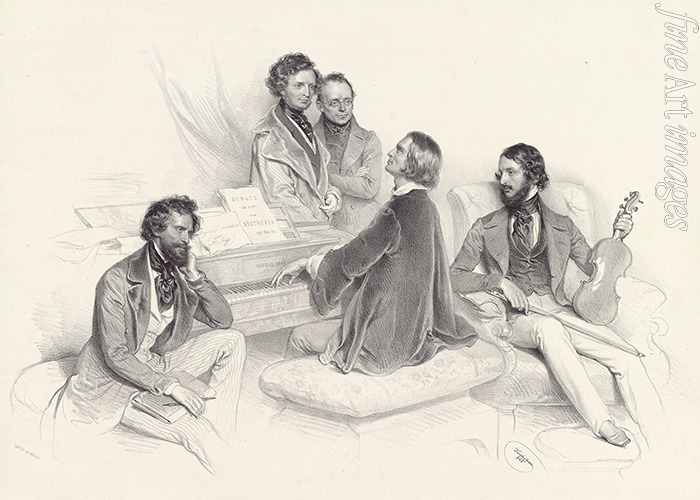 Matinee at Liszt's home. (Composer Hector Berlioz, the composer Carl Czerny and the violinist Heinrich Wilhelm Ernst)