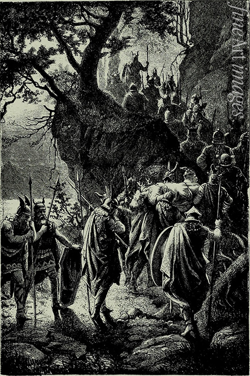 The Twilight of the Gods at the Bayreuth Festival in 1876. Third act. Funeral procession of Siegfried