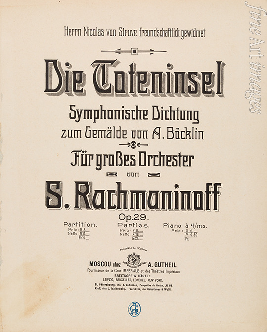 Cover of the score of the symphonic poem Isle of the Dead, Op. 29 by Sergei Rakhmaninov
