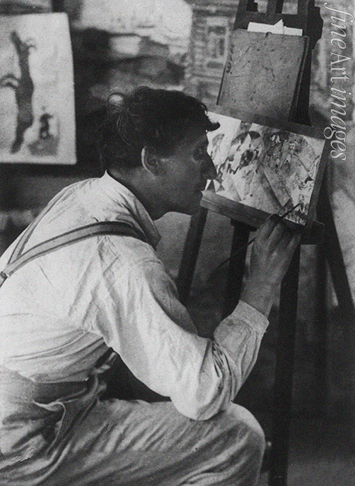 Marc Chagall working on a sketch for the Introduction to the Jewish Theatre mural. Moscow
