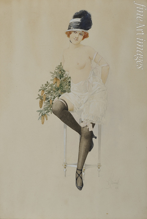 Nude, Nudity, Lady, Nude women, Young Woman, Chest of drawers, Bedroom, Geting up, Waking up, Bed, At the toilet, Akt, Negligé, Negligée, Undergarments, Underwear, Boudoir, Stockings, Garters, Toilette, Lingerie