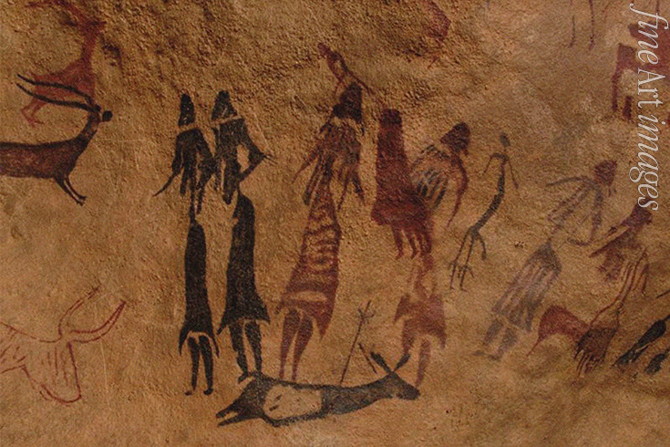 The dancers of Cogul. Cave painting from the Roca de los Moros (Roca dels Moros)