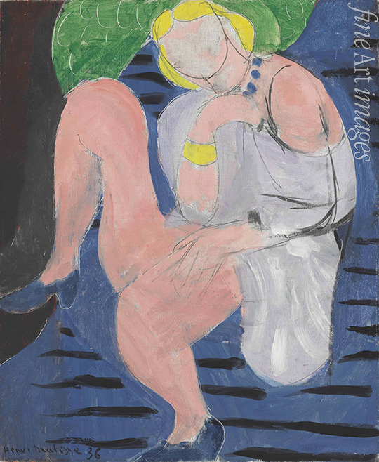 Nu assis, fond bleu (Sitting nude against a blue background)