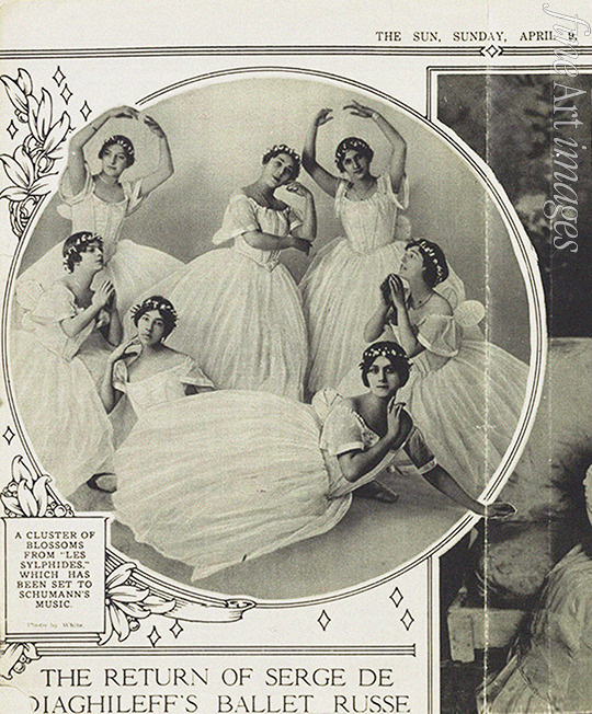 Ballet Russes dancers in ballet Les Sylphides, New York. (Olga Khokhlova - lying in the center)