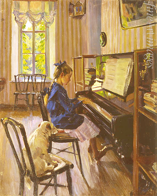 Keywords: Music, Jugendstil, Music instruments, Musicians, Musician, Playing music, Dog, Sheets of music, Scores, Piano, Musical instruments, Piano hour, Art nouveau, Modern Style, Modernisme, Stile Liberty, Reformstil, Wiener Secession, Stil Modern, Fin de siècle, Musical instrument, Sheet music