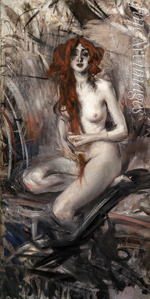 Morning, Pastel, Nude, Nudity, Light, Colourfulness, Lady, Nude woman, Body, Bathing, Beauty, Impression, Bath, Toilet, In the bed, After a bath, Hair, Woman combing her Hair, Akt, Impressionism, Impressionists, Red hair, Negligé, Negligée, Bathroom, Boudoir, Toilette, Red-headed, Redheaded