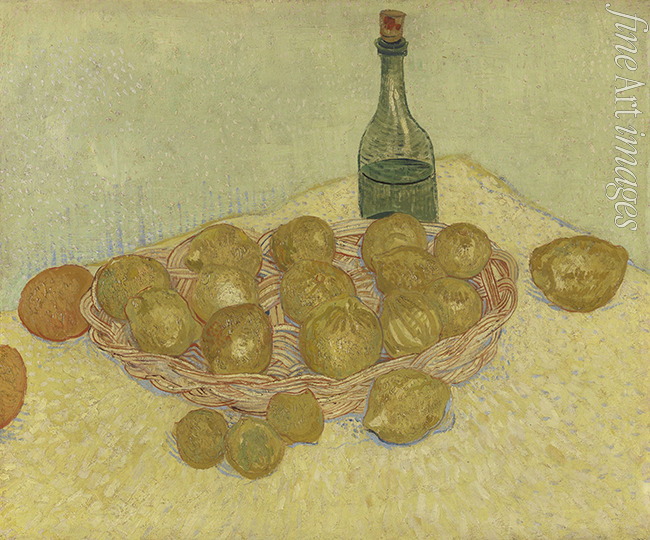 Basket of lemon and bottle