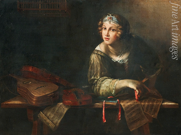 Allegorical representation with musical instruments and notes