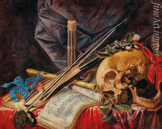 Keywords: Music instruments, Violin, Eternity, Sheets of music, Scores, Skull, Transience, Vanitas, Vanity, Life and Death, Memento Mori, Death symbols, Vain, Futility