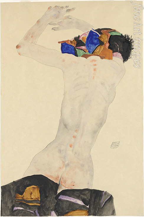 Rückenakt mit buntem Tuch (Nude from the back with a colored cloth)