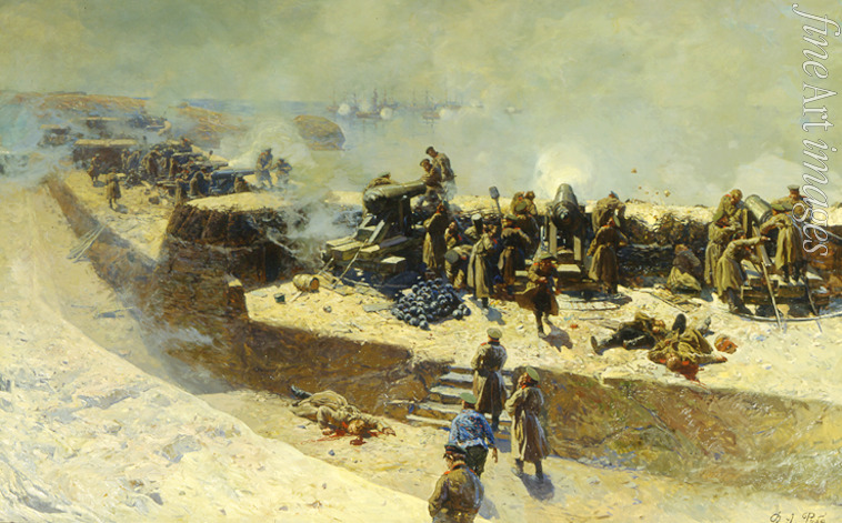 Roubaud Franz - The Alexander battery attacking the English-French fleet on October 5, 1854