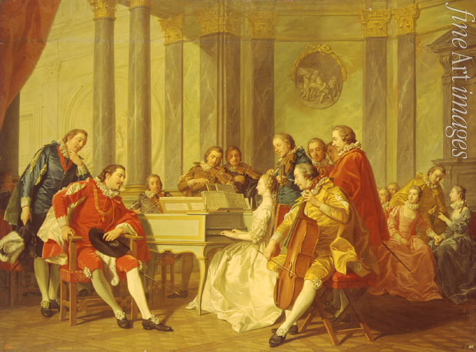 Keywords: Music, Music instruments, Violin, Musicians, Musician, Playing music, Music lovers, Sheets of music, Scores, Piano, Cello, Cellist, French painting, Musical instruments, Sextet, Musical instrument, Clavichord, Violoncello, Sheet music