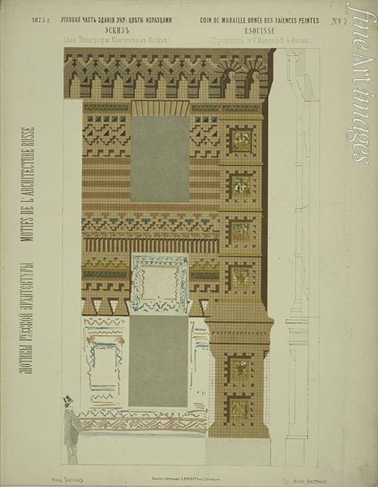 ?orner part of the Mamontov printing house building, decorated with colored tiles