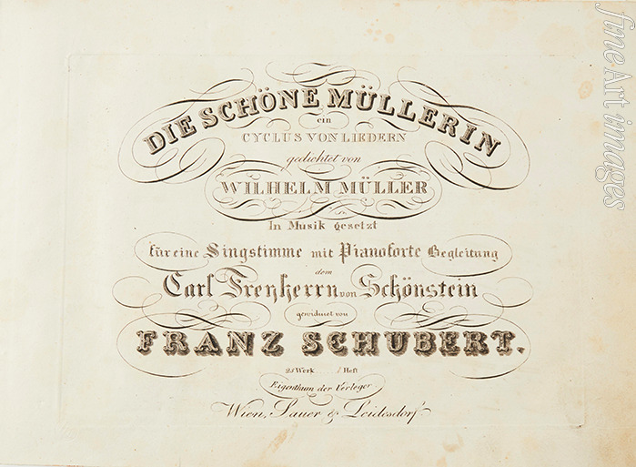 First edition of the complete song cycle The Beautiful Müllerin by Franz Schubert