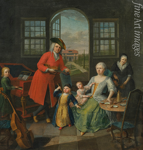 A family playing music in an interior