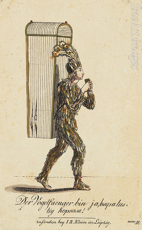 Papageno. Costume design for the Opera The Magic Flute by W. A. Mozart