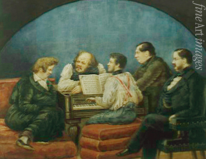 The composer Michail I. Glinka (1804-1857) and his Friends (Group portrait of K. Briullov, M. Glinka, Y. Yanenko, N. Kukolnik an