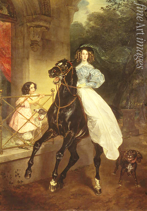 Lady, Lighting, Girl, Hat, Beauty, Italy, Sisters, Horse, Young Woman, Child, Dog, Woman's portrait, Female portrait, Palace, Aristocracy, Romanticism, Rich, Childhood, Horsewoman, Amazon, Briullov, Bryullov, Briuloff, Pacini