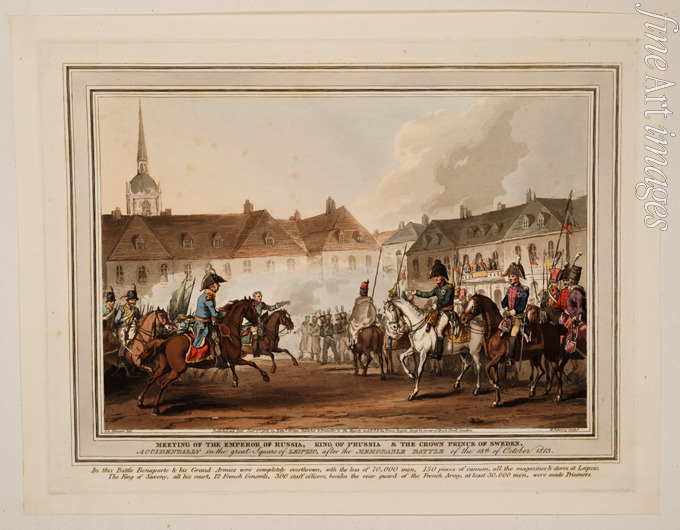 Title:The Meeting of the Emperors of Russia und Austria, King of Prussia and Crown Prince of Sweden in Leipzig on 18th October 1813